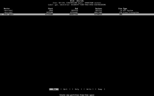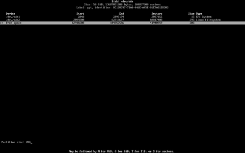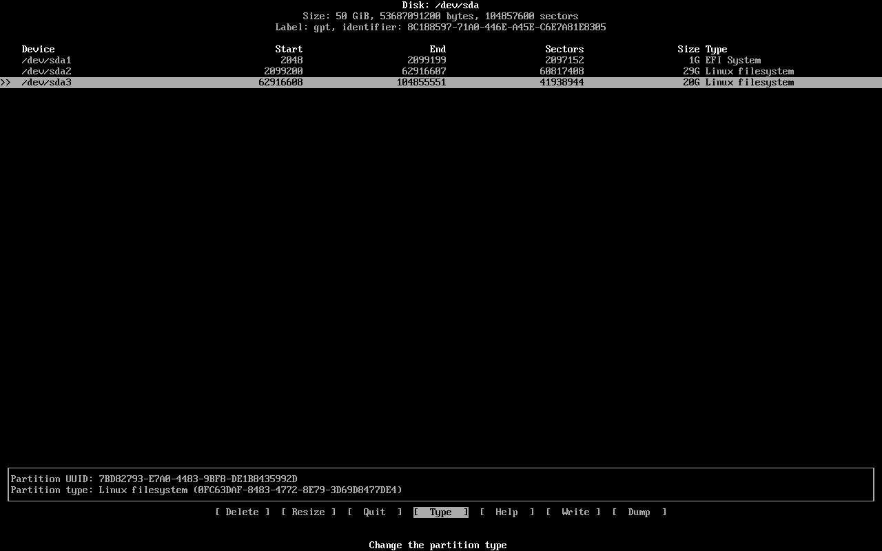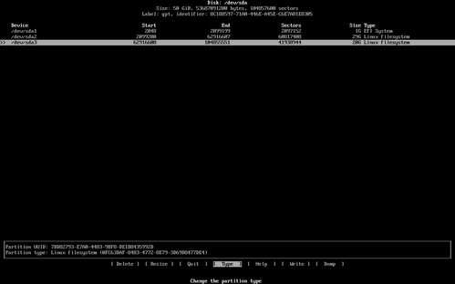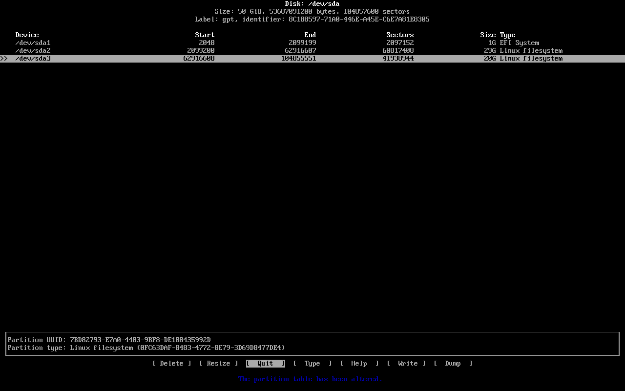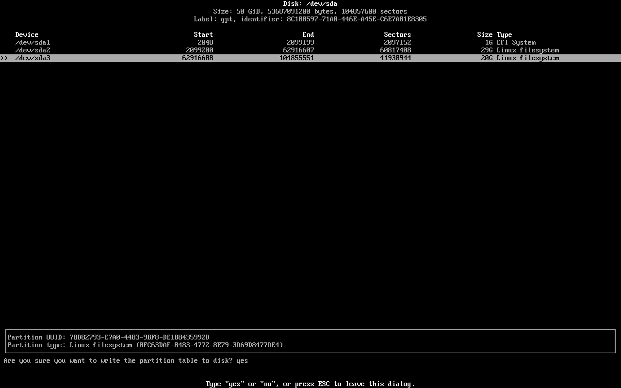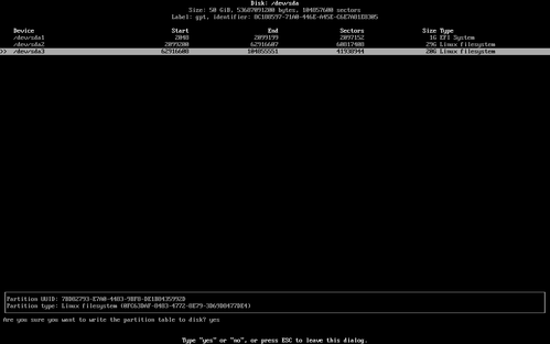 Anote as partições criadas/alteradas, no meu caso: /dev/sda1, /dev/sda2 e /dev/sda3.