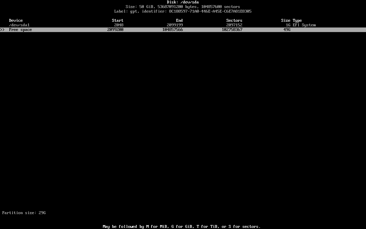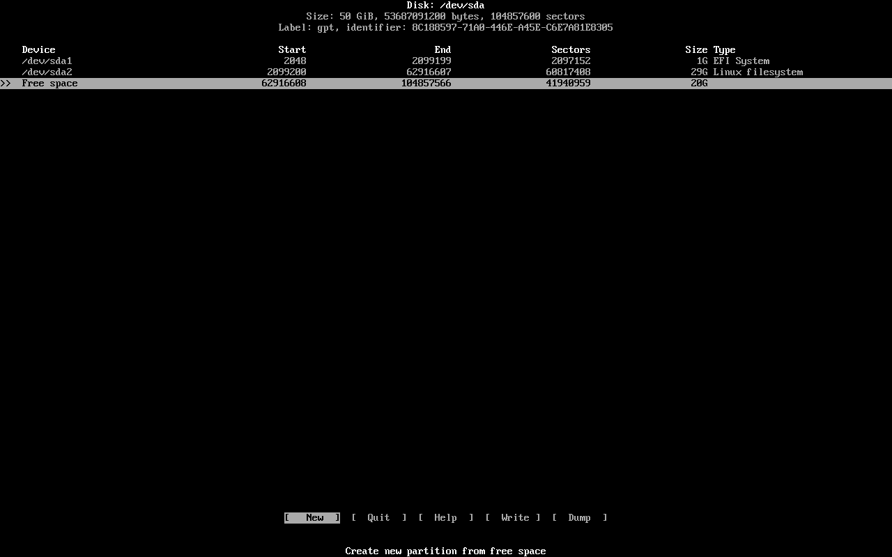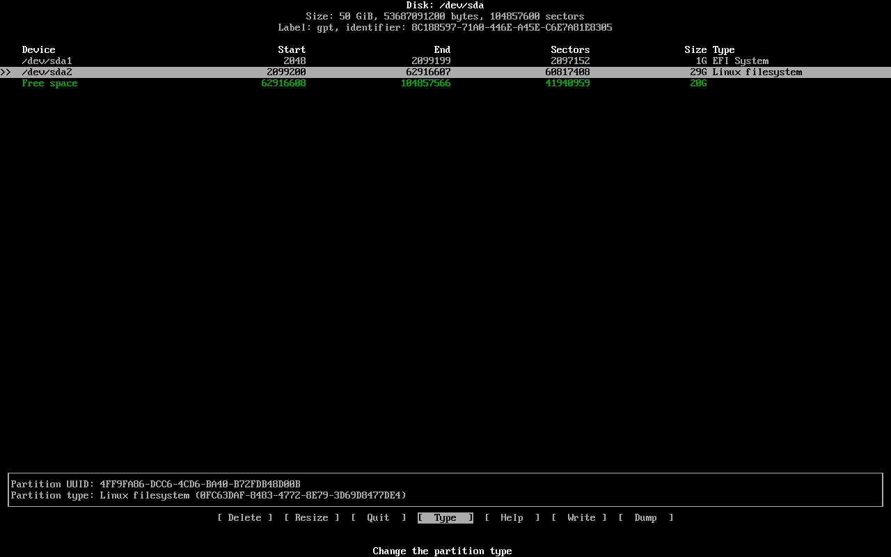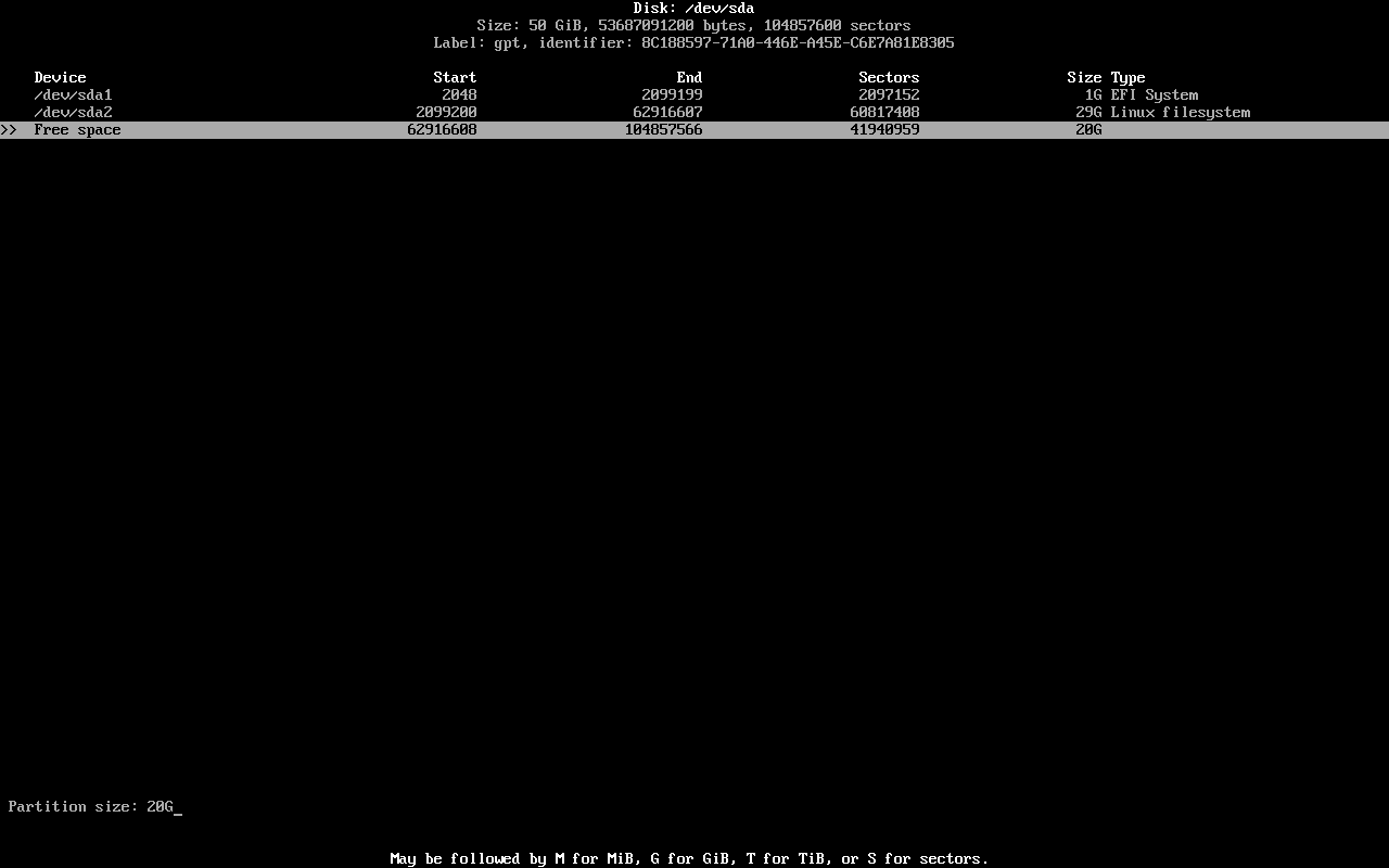Anote as partições criadas/alteradas, no meu caso: /dev/sda1, /dev/sda2 e /dev/sda3.