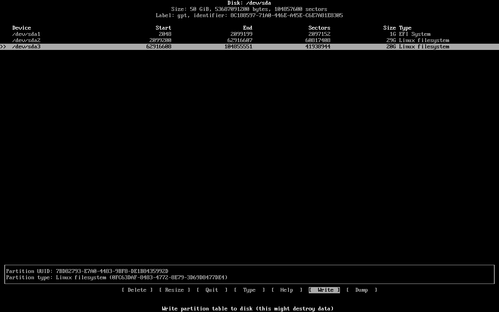 Selecione "Write" para gravarmos as mudanças no disco e enter.