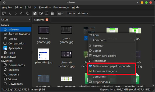 O caso do wallpaper é emblemático. No LXQt: