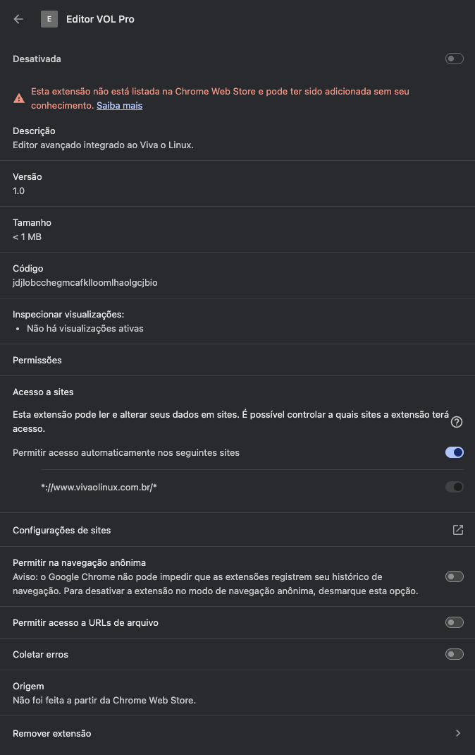 Como é uma extensão fora da loja oficial, vai dizer que é inseguro.
