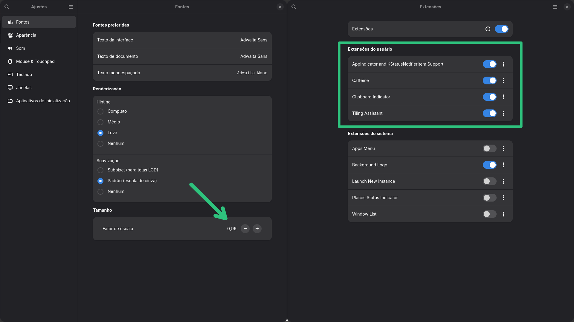 [ i ]Tiling Assistant[ /i ] para gerenciar janelas lado a lado.