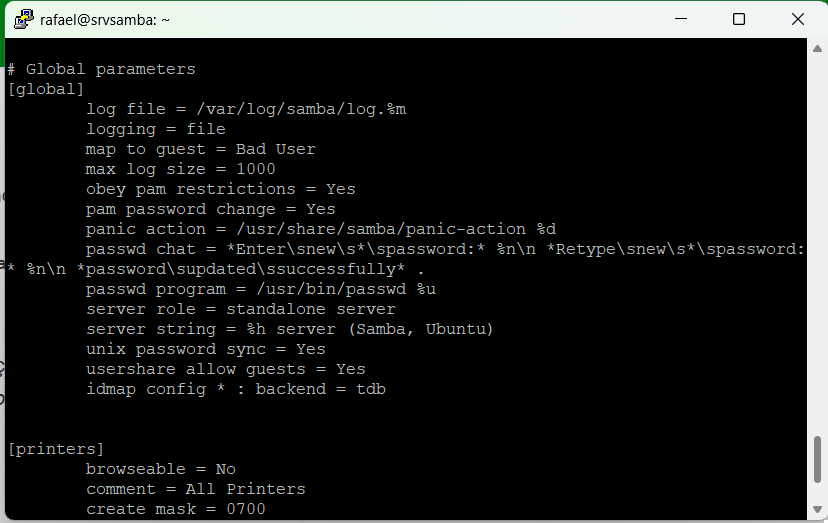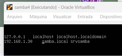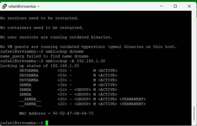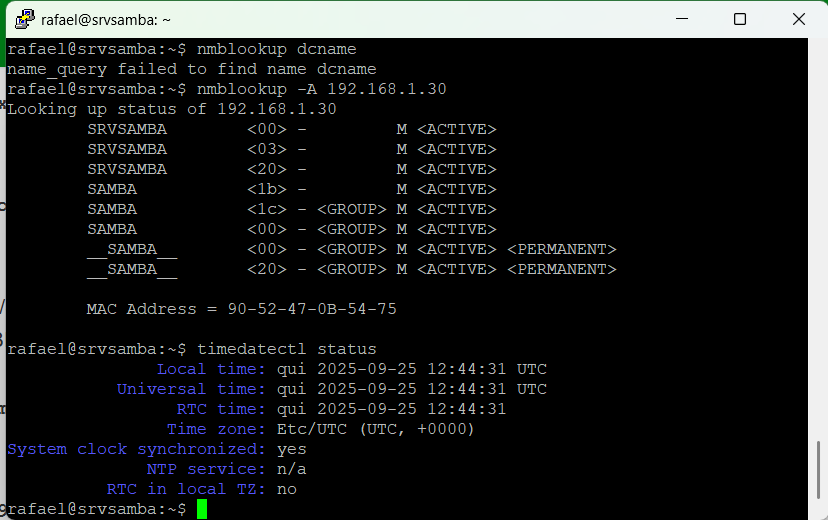 Teste resolução NetBIOS e resposta do servidor Samba.