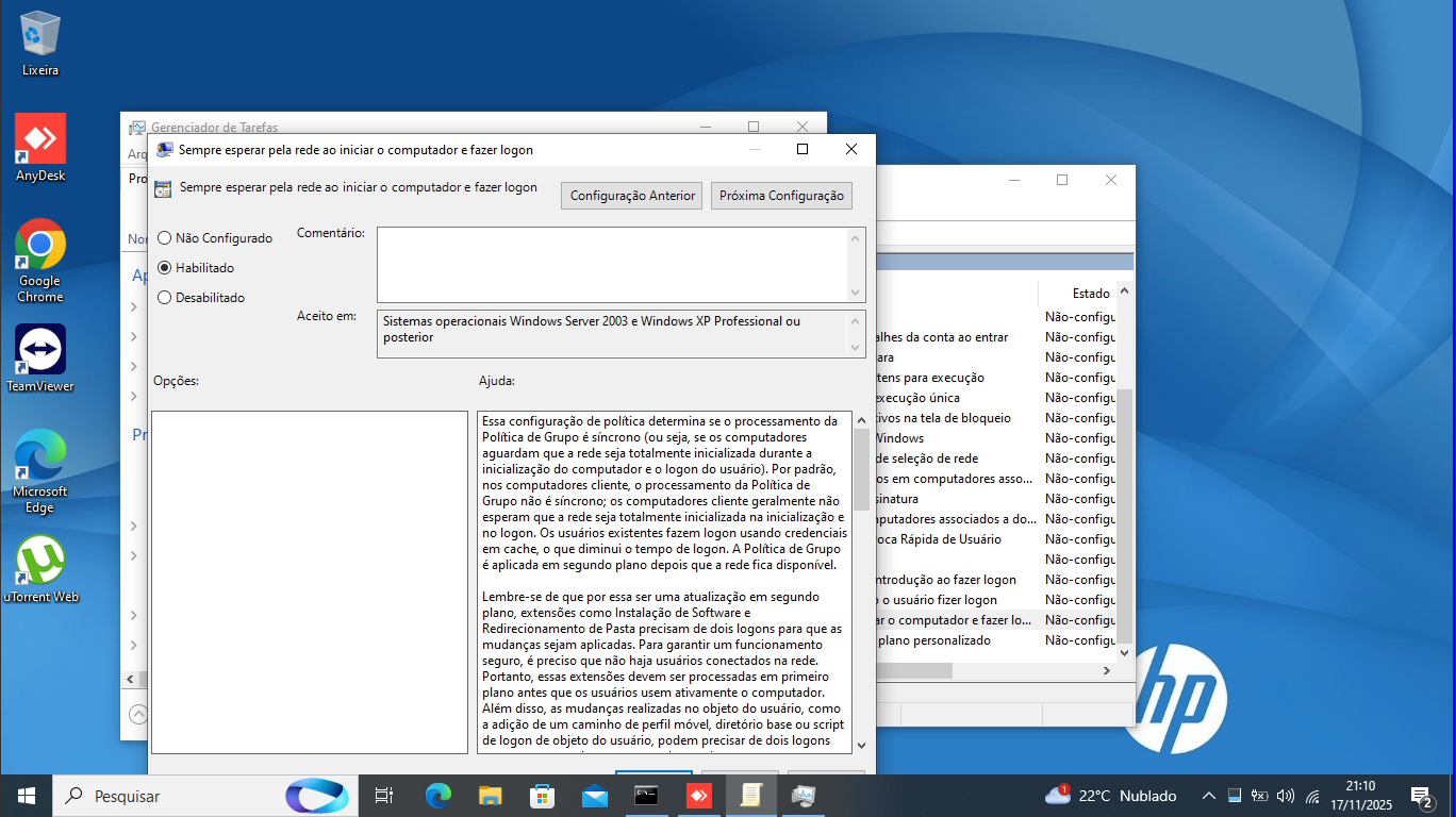 Rede não ativa antes do logon (principalmente Wi?Fi).